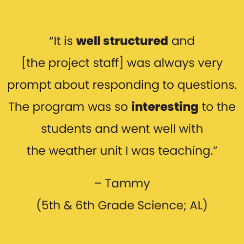 Provided: Balloon equipment and detailed launch instructions & video, online notebook, video lesson guides, 2-3 engagements with UAH personnel (virtual/in-person), email support.
